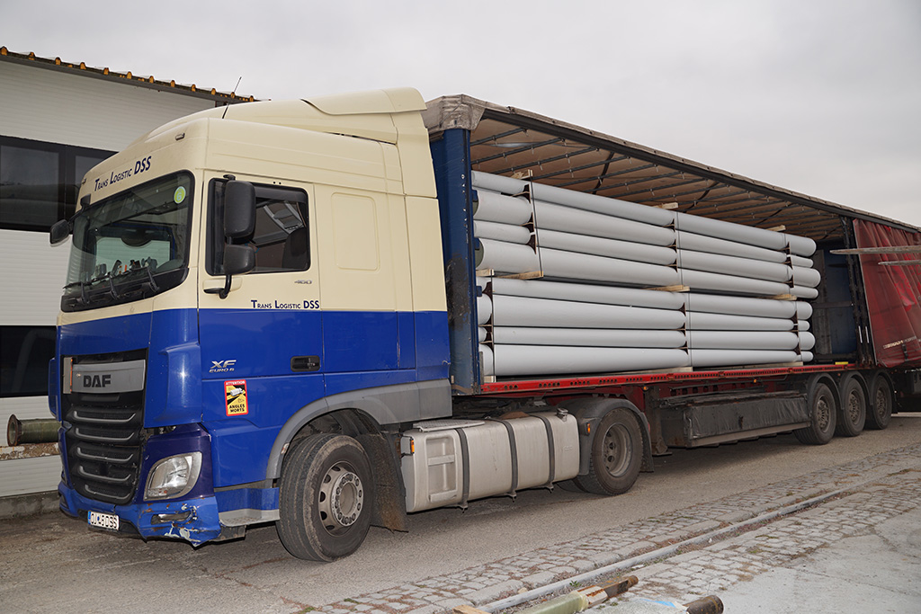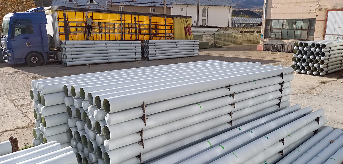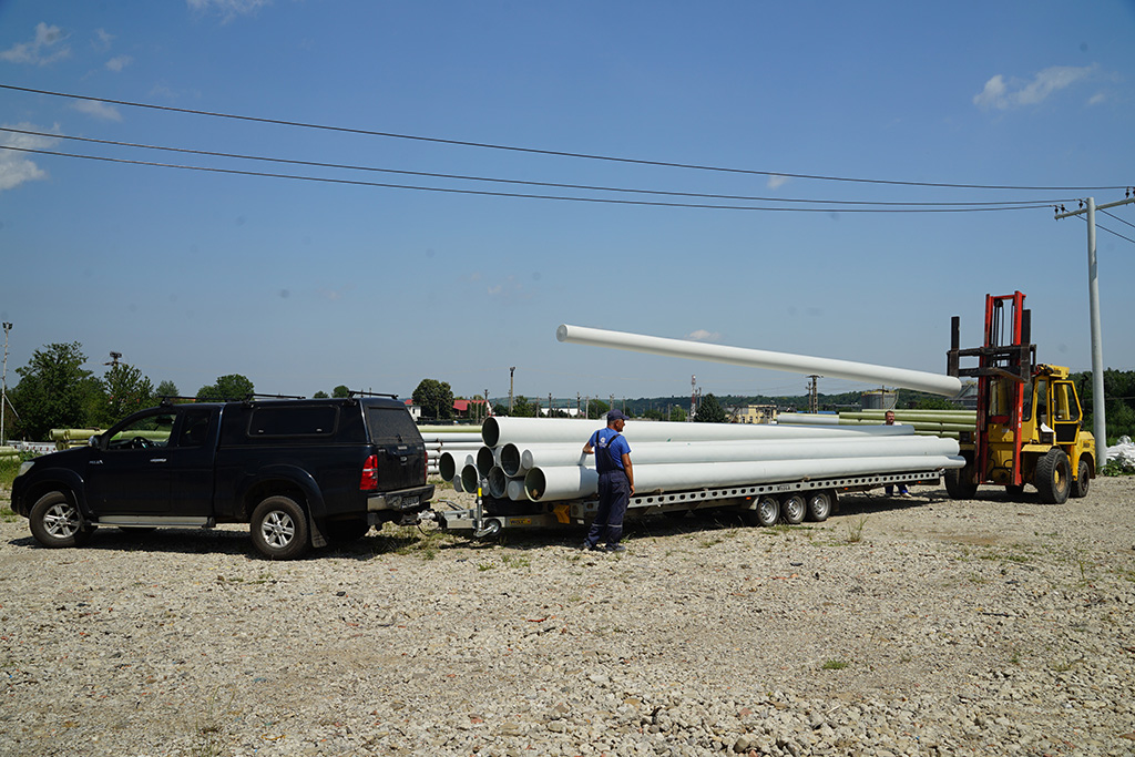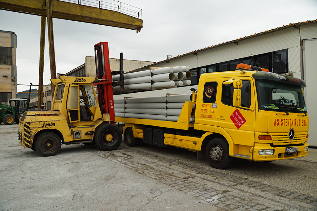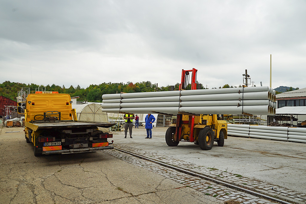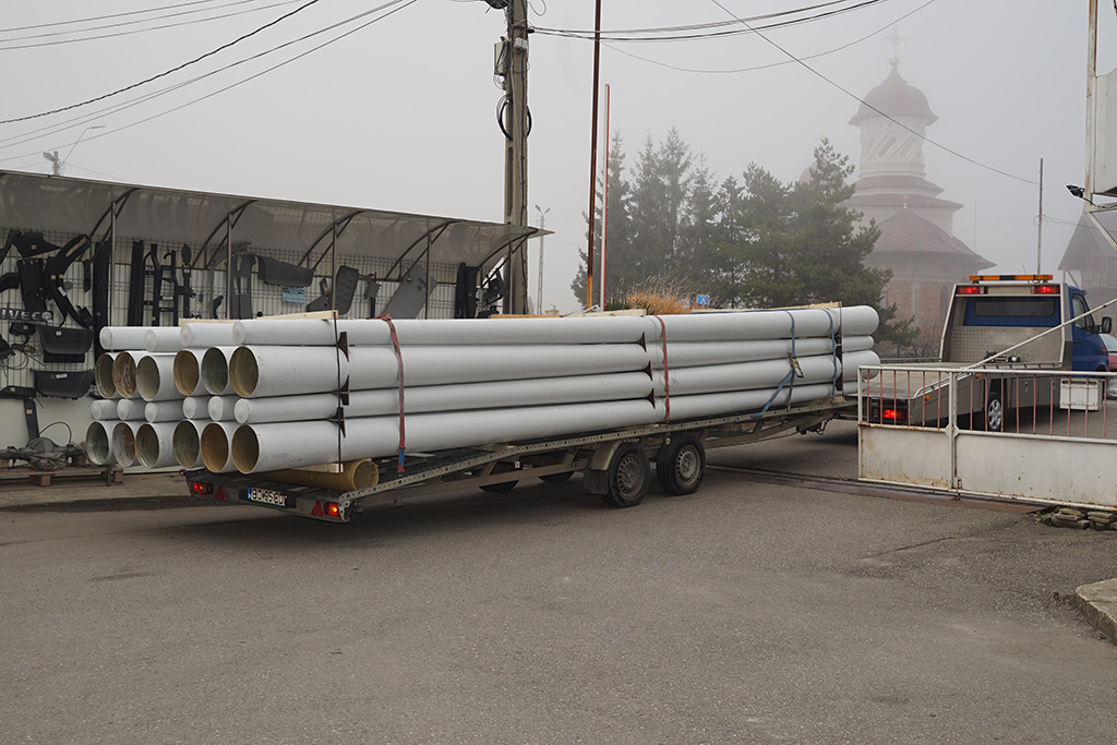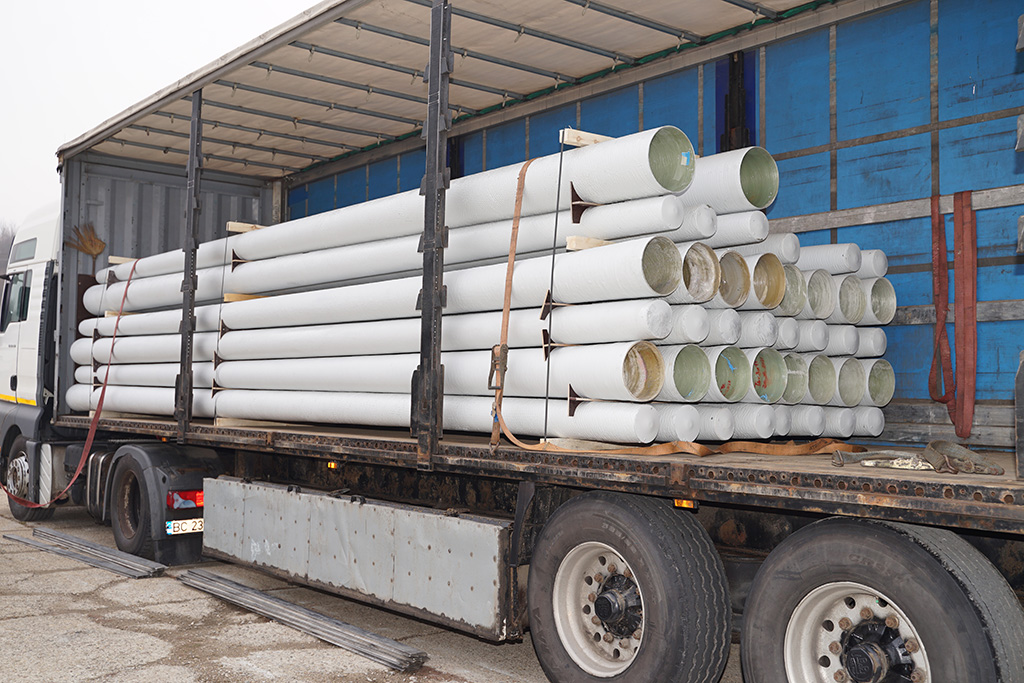 Asemenea încărcătură în care se introduc media a 150 de stâlpi din fibră de sticlă reduc costurile cu circa 10 transpoarte cu stâlpi din beton. Având interiorul gol, pot fi introduși unul în altul 2, 3, 4 buc.