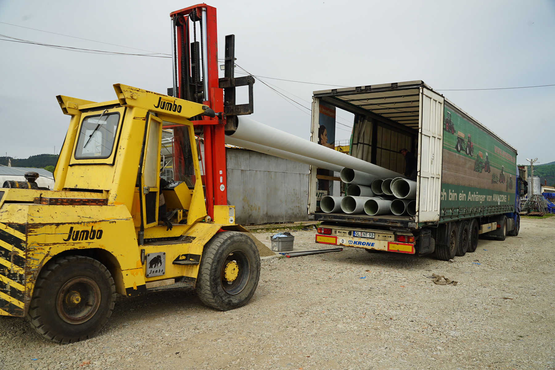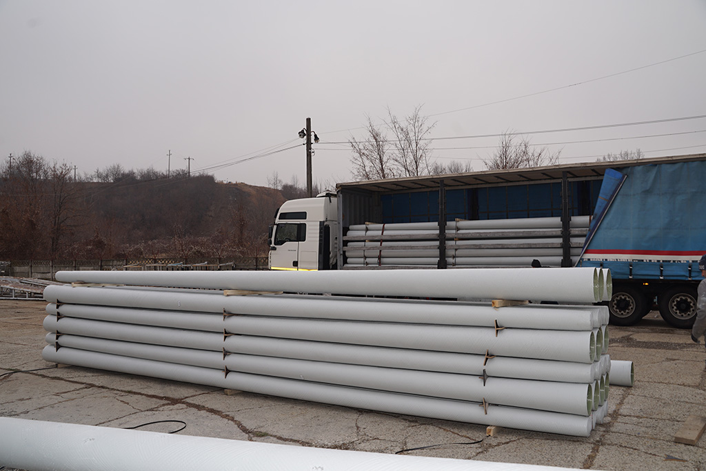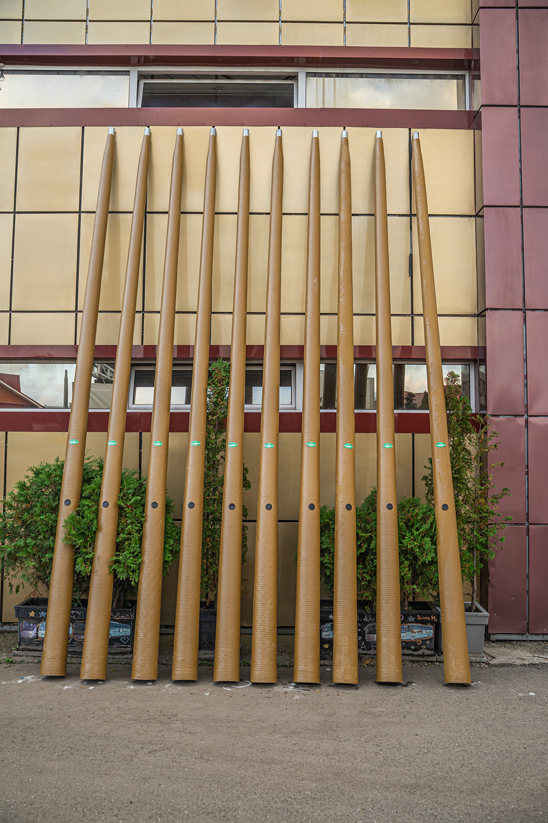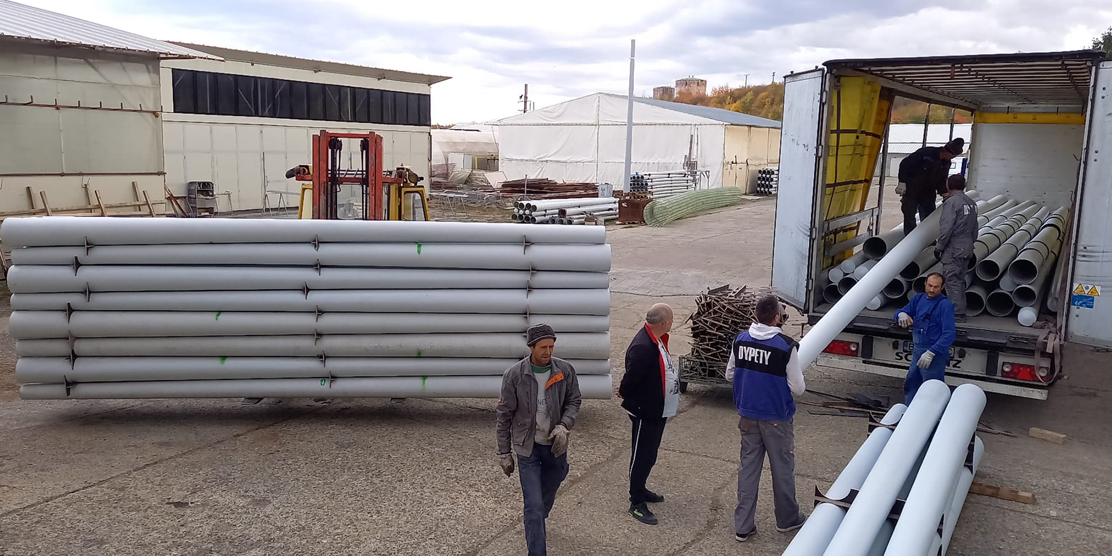 Asemenea încărcătură în care se introduc media a 150 de stâlpi din fibră de sticlă reduc costurile cu circa 10 transpoarte cu stâlpi din beton. Având interiorul gol, pot fi introduși unul în altul 2, 3, 4 buc.